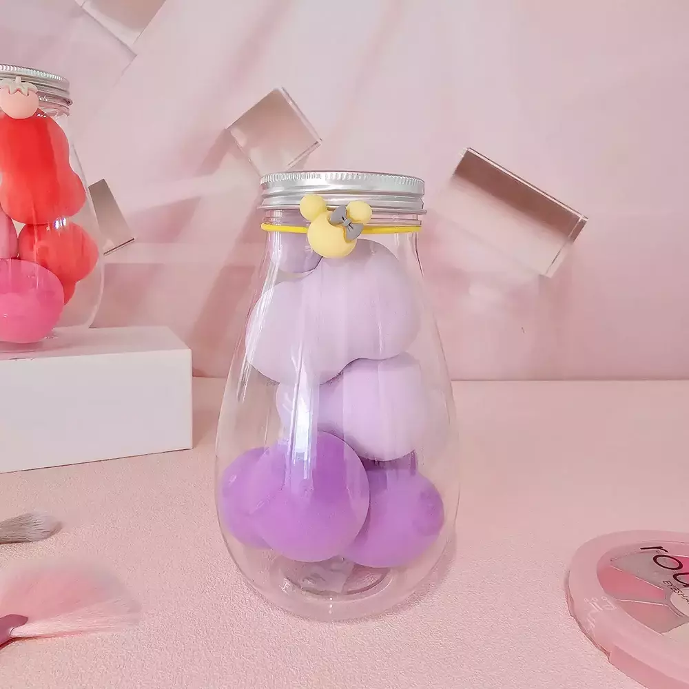 (Frasco con 6 esponjas para maquillaje de distintos tamaños y modelos, ideales para cada zona del rostro,las esponjas son lavables y reutilizables.