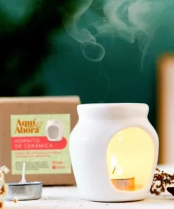 MODO DE USO: Llená con agua el recipiente superior del hornito. Luego añadí unas gotas de aceite aromático al agua. Finalmente colocá una vela en la cavidad inferior y encendela para comenzar a evaporar la fragancia.