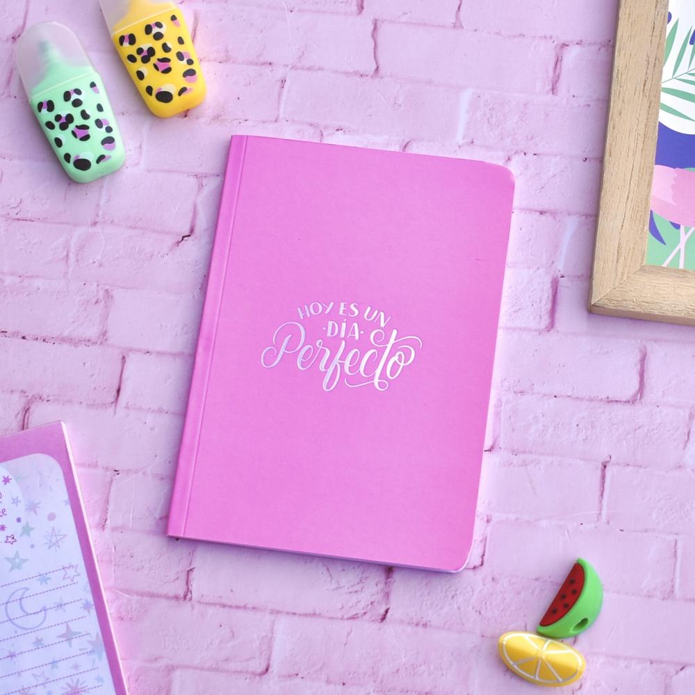 Libretas color pastel con tapa blanda, estampadas con frases en color plateado