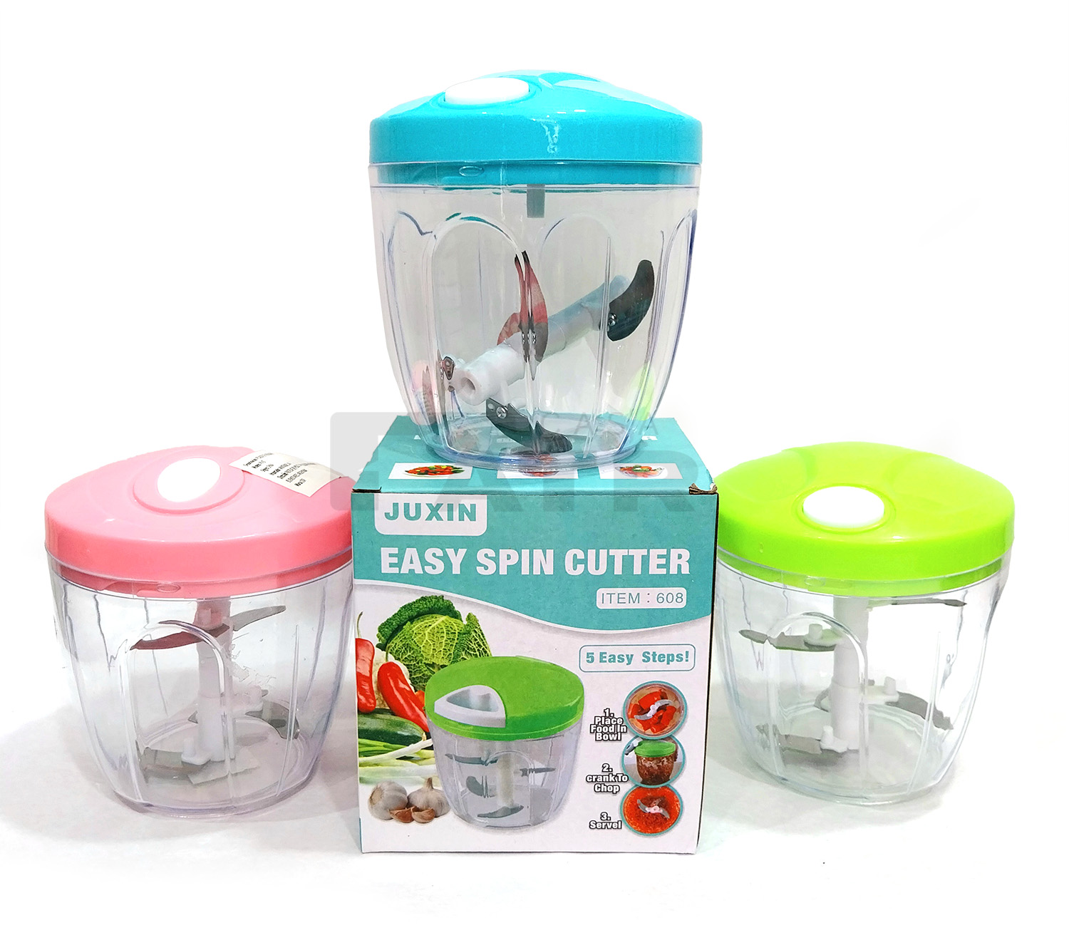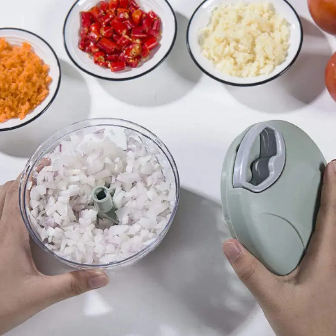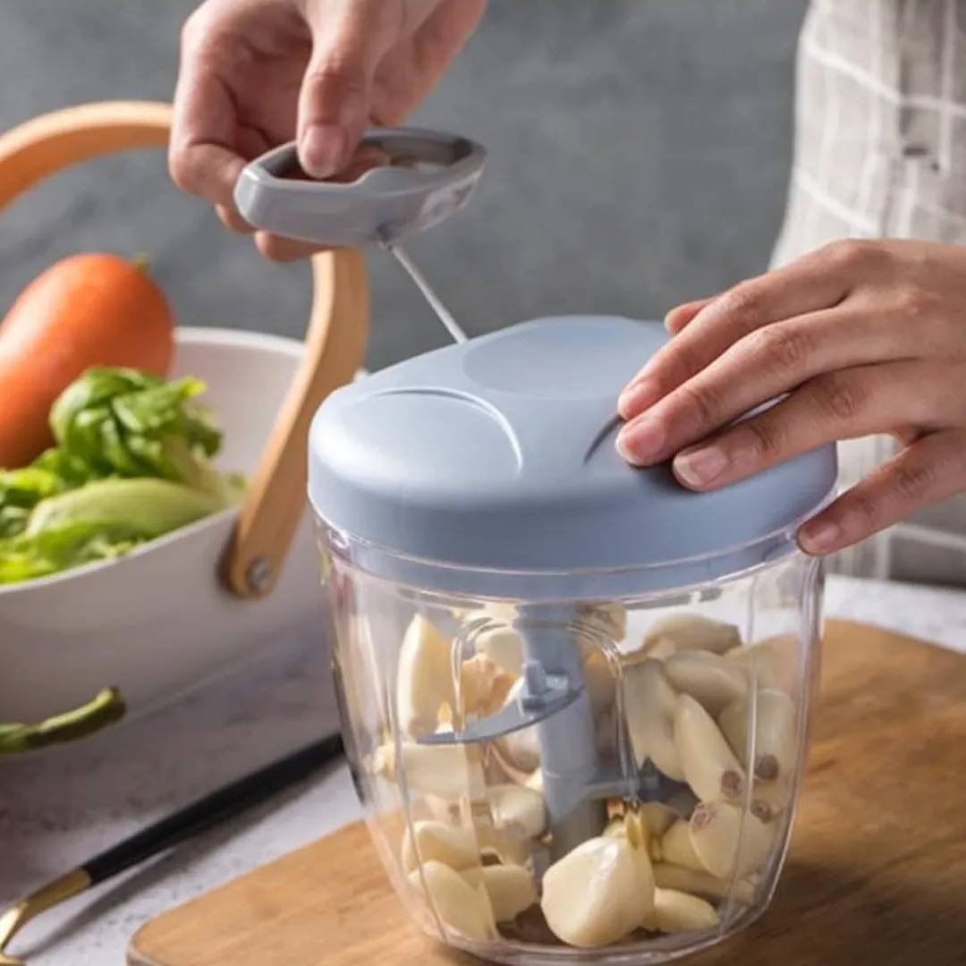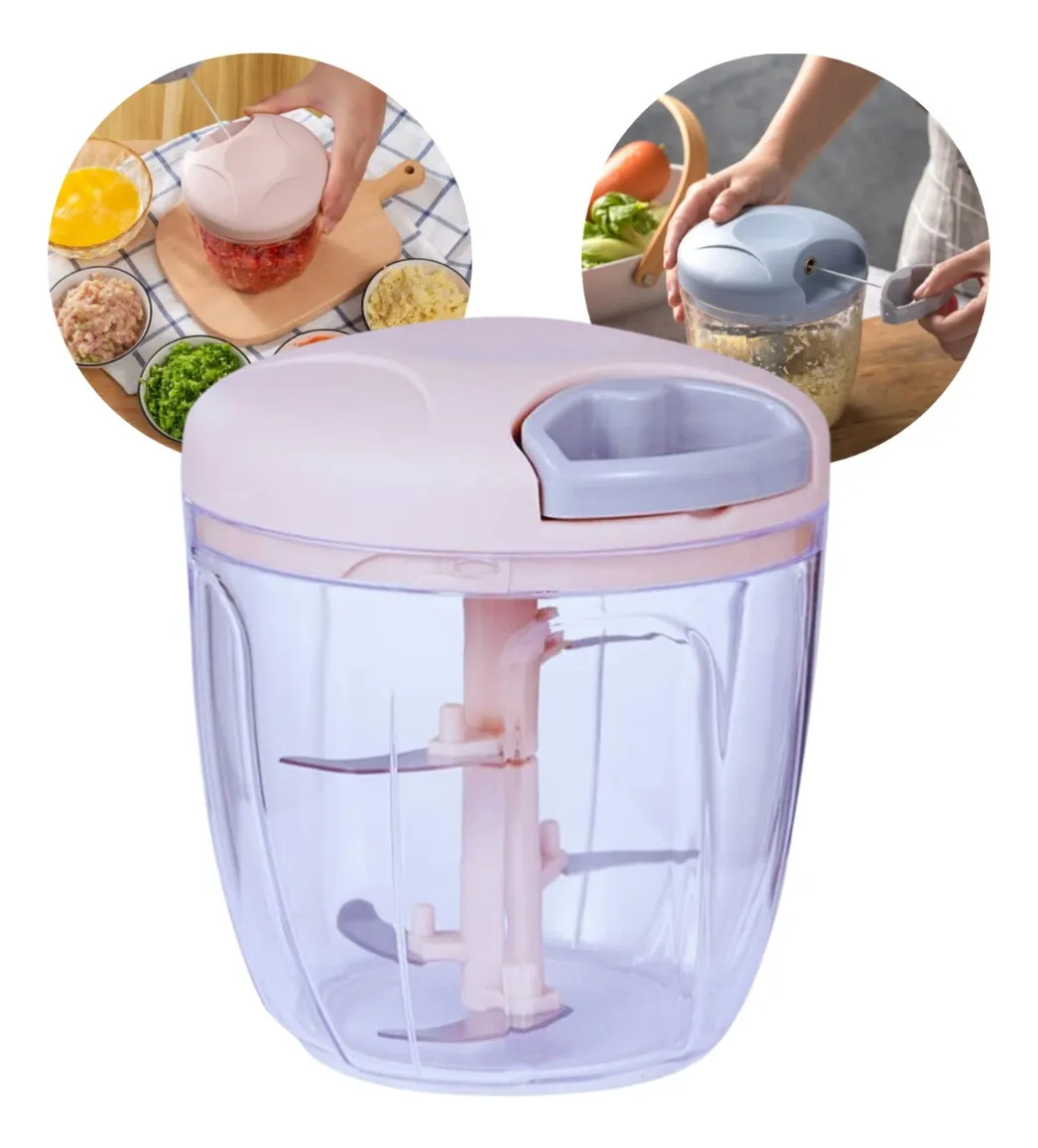 Alta eficiencia: tres cuchillas afiladas. Basta con tirar del cordón unas veces para cortar/picar/mezclar verduras, frutas, y más.