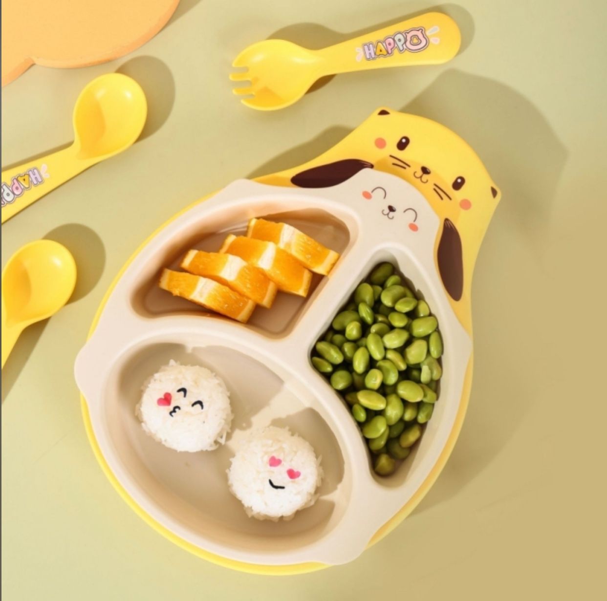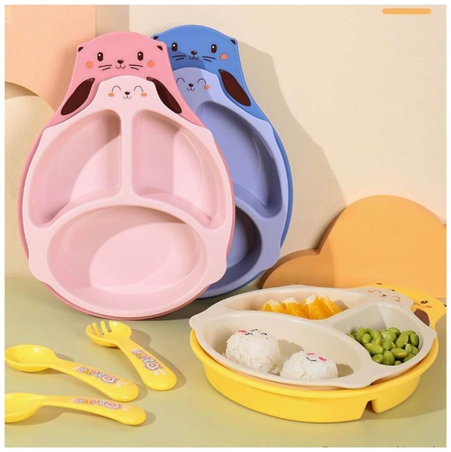 Bandeja Doble Plato con Divisiones Infantil Diseño Kitten + Cubiertos
