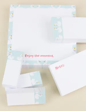 Set de 6 notas adhesivas de diversos tamaños con diseño de cisne.